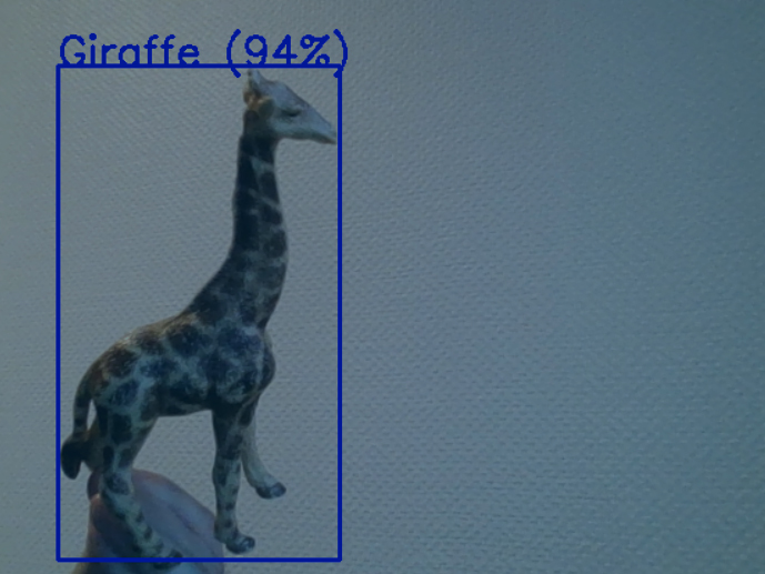 Das Bild des Beitrages zeigt eine Spielzeugfigur in Form einer Giraffe. Um sie herum befindet sich ein Rahmen mit der Information, dass sie von YOLO zu 94% als Giraffe erkannt wird.