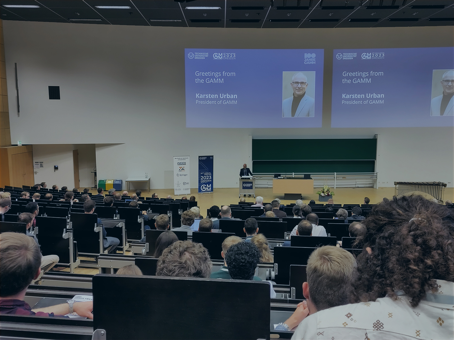 Das Bild zeigt die Begrüßung bei der Jahrestagung der GAMM 2023 in der TU Dresden.