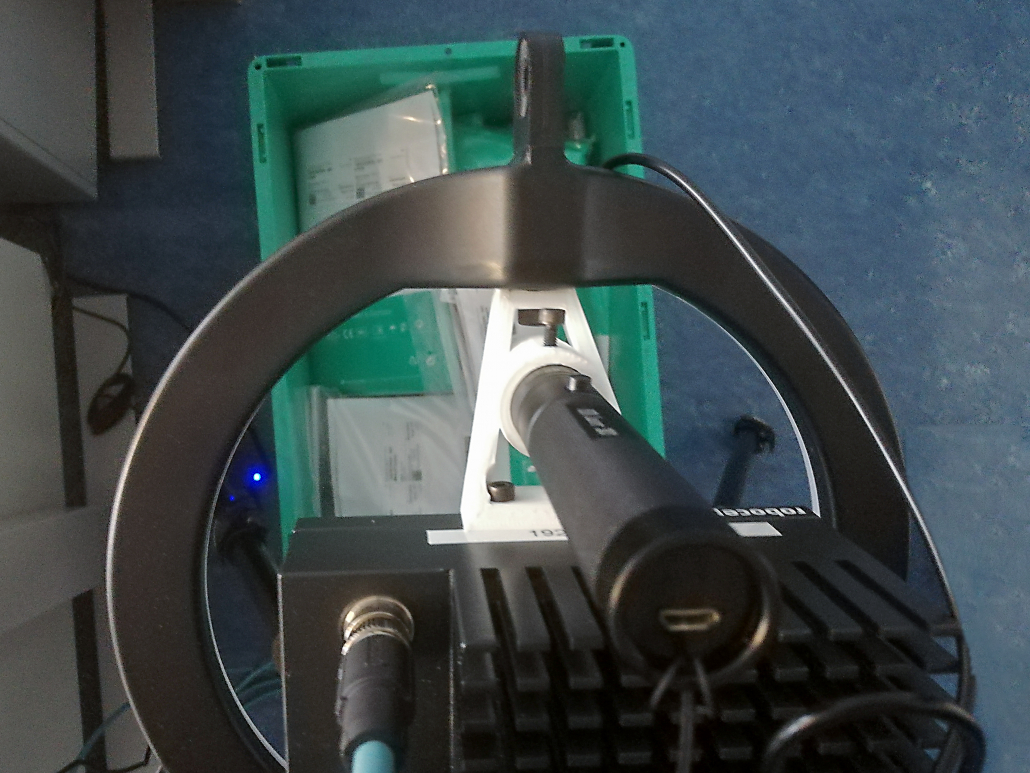 Da eine Dauerbelastung des Lichtes und des Lasers vermieden werden soll, ermöglichten wir ein An- beziehungsweise Ausschalten der beiden Lichtquellen über eine Netzwerkschnittstelle. Dies ermöglicht es uns, die Komponenten nur während einer angeforderten Bildaufzeichnung anzuschalten. Um dies beim Ringlicht zu ermöglichen, modifizierten wir den Schalter des Ringlichtes mit einem zusätzlichen Ausgang.
