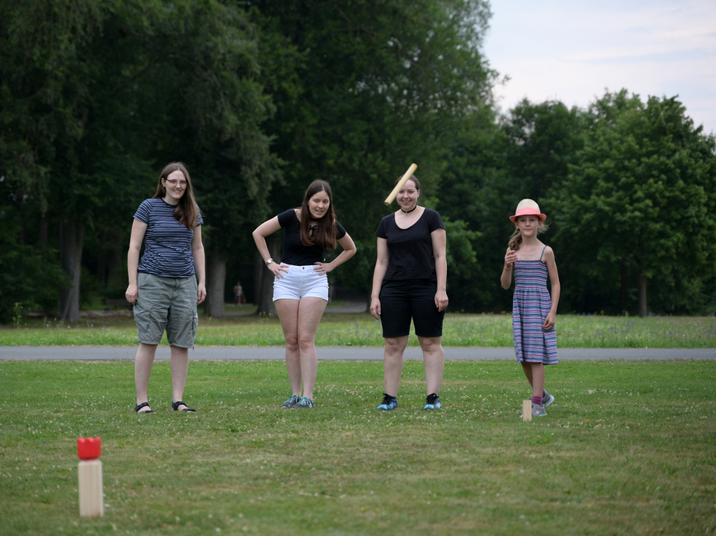 Endlich wieder zusammensitzen, gemeinsam lachen, lecker essen und feiern war das Motto unseres diesjährigen Sommerfestes Ende Juli. Trotz Sturmwarnung trauten wir uns mit unseren Liebsten in den Neu-Ulmer Wiley Park, wo wir von kalten Getränken jeglicher Art begrüßt wurden. Die Zeit bis zum Essen war gefüllt mit guten Gesprächen und verschiedenen sportlichen Aktivitäten. Zu den beliebten Klassikern wie dem Wikingerschach und Spikeball kam dieses Jahr noch Frisbee dazu.