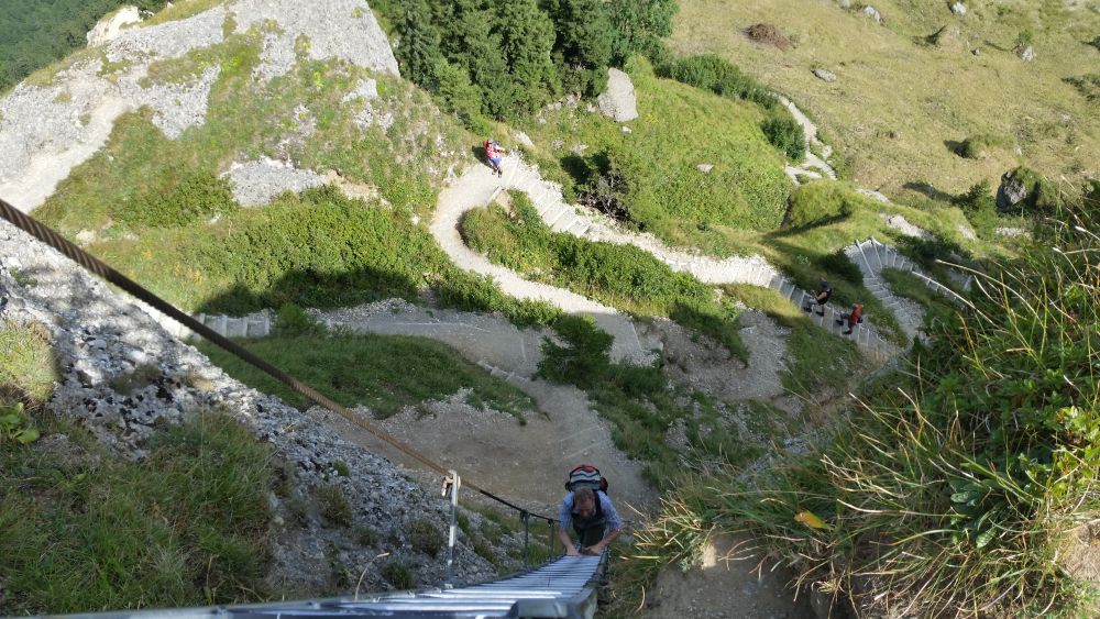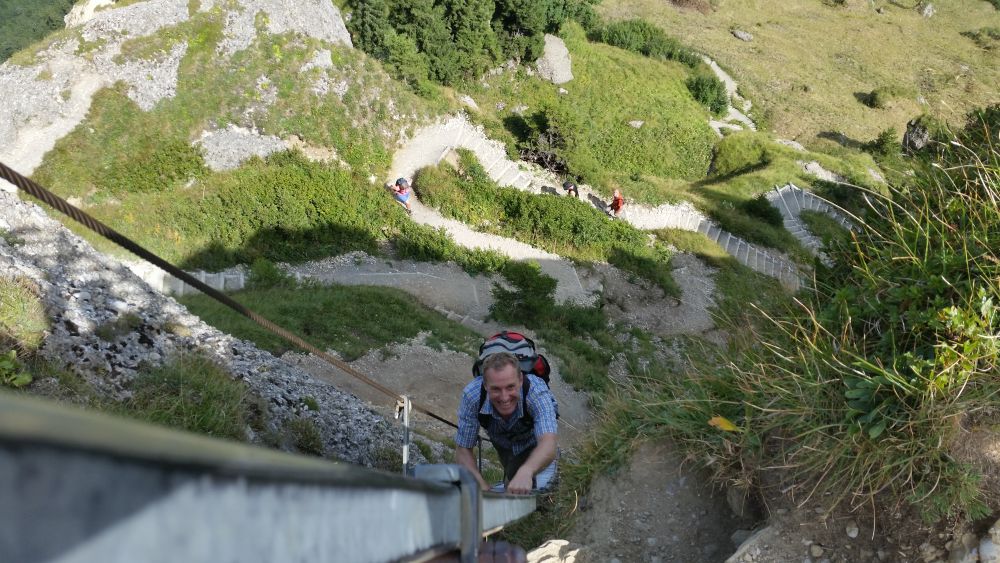 Weiter ging es über die Himmelsleiter zum Steineberg. Der Aufstieg war für manchen sicherlich eine Mutprobe. Kein Wunder, bei einer fast senkrechten Leiter am Berg ohne Sicherung.