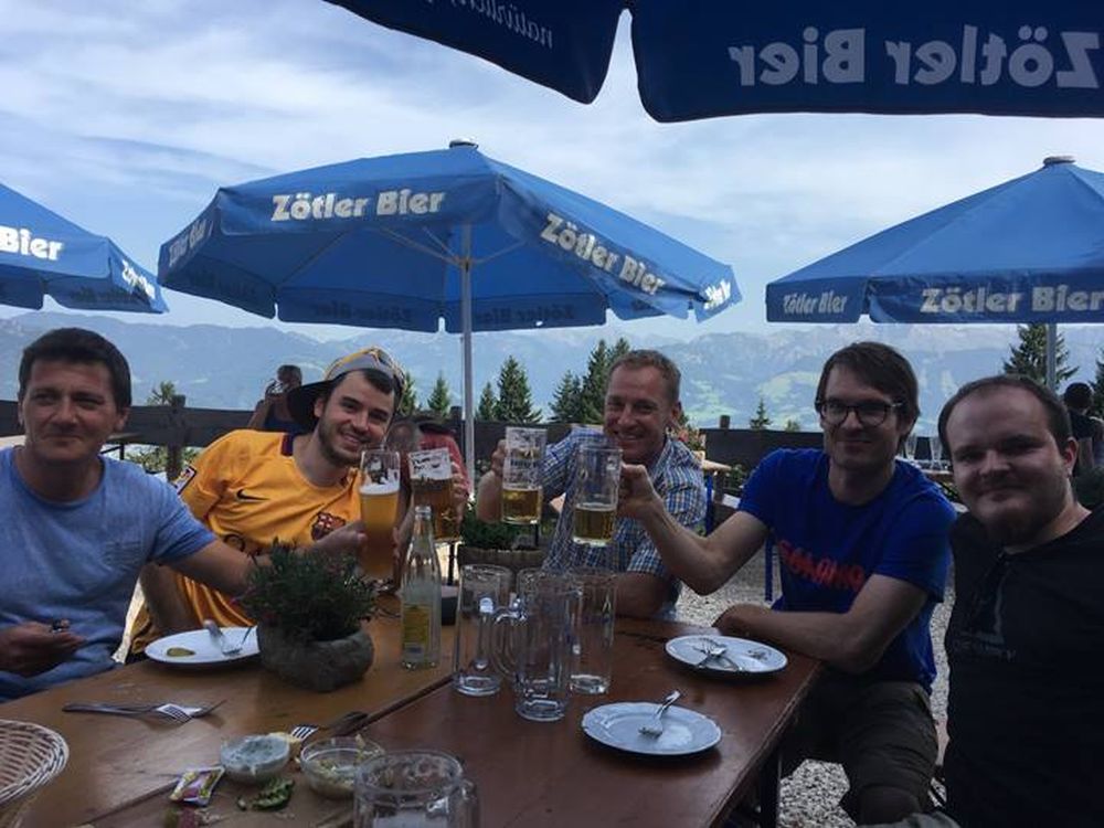 Im Sommer 2017 machten sich die Gipfelstürmer der ATR auf um von Immenstadt aus den Steineberg zu erklimmen. Entlang des Steigbachtobels erklommen wir die Mittelstation. Dort trennte sich die Gruppe. Die einen bevorzugten den Kuhweg, nein… ähhh den Fußweg, während die anderen die Landschaft während einer gemütlichen Fahrt im Sessellift genossen. Auf dem Mittaggipfel gab es dann wieder vereint ein gemütliches Vesper und für den einen oder anderen auch ein Wegbier zur Stärkung.