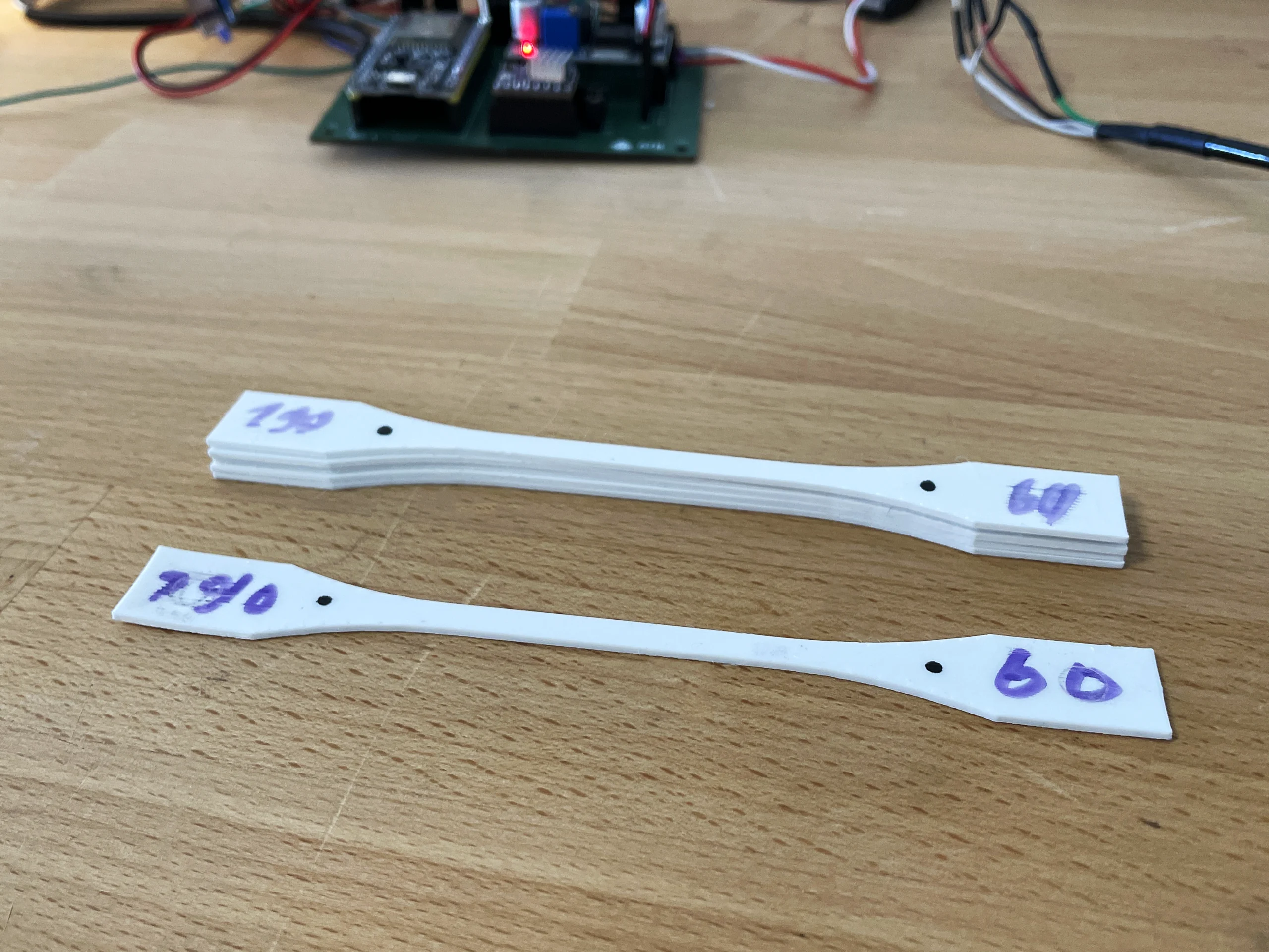 Das Bild zeigt eine Nahaufnahme der Zugstäbe auf der Holzplatte der Werkbank.